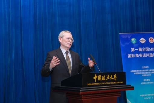 中国国际贸易促进委员会法律事务部副部长(主持工作)、国务院关税税则委员会办公室对美加征关税商品排除工作评审专家委员会秘书长刘超在致辞中,用自己初出茅庐,从事经济贸易工作时的经历与参赛的年轻学子共勉,同时,刘部长表达了对我国在当前国际形势高压状态下国际法律法务精英人才短缺的担忧,也因此更对本次赛事涌现出的年轻的、优秀的90后国际商务谈判人才感到欣慰和抱有极大的期待。刘部长围绕智商、情商、逆商、“睡商”、法商等“五商”,为与会师生作了系统解读与经验传授,建议大赛建立参赛选手人才跟踪档案,精细化地进行人才培养,服务于国家对高端人才的期望。刘部长勉励师生,一分耕耘不一定有一分收获,但没有耕耘收获的机会将更小;重在参与首在参与,其次为给予,没有成为最佳谈判手的同学同样值得赞扬和鼓励;一代人有一代人的使命,后浪奔涌才能使长江滚滚向前,希望大家共同努力推动历史前进的大轮。