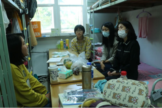 新生报到的最后一天,为充分了解yl6776永利集团新生报到和住宿情况,与新生进行近距离沟通,yl6776永利集团分党委副书记何欣、2018级辅导员郑益群、2020级辅导员张叶专程走访新生宿舍,看望刚入校的新生们。在宿舍里,何欣副书记和两位辅导员与新生亲切的沟通,了解大家的兴趣爱好,询问关于志愿填报时的想法和老员工活第一天的感受,鼓励同学们多多跟辅导员、师兄师姐们沟通,尽快适应大学的环境,开启全新的老员工活!
