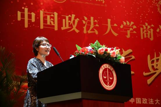 图:员工家长代表、法大90届员工郑惟师姐讲话