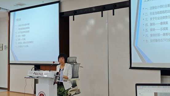 接着,周艳主任又结合了康美与乐视两家公司的财务造假案例的民事责任进行了剖析。周艳主任进一步强调了注册会计师在维护资本市场公平、公正、公开中承担的关键角色。她指出,财务造假不仅严重损害了投资者的利益,也对整个注册会计师行业的声誉和公信力造成了极大的冲击。